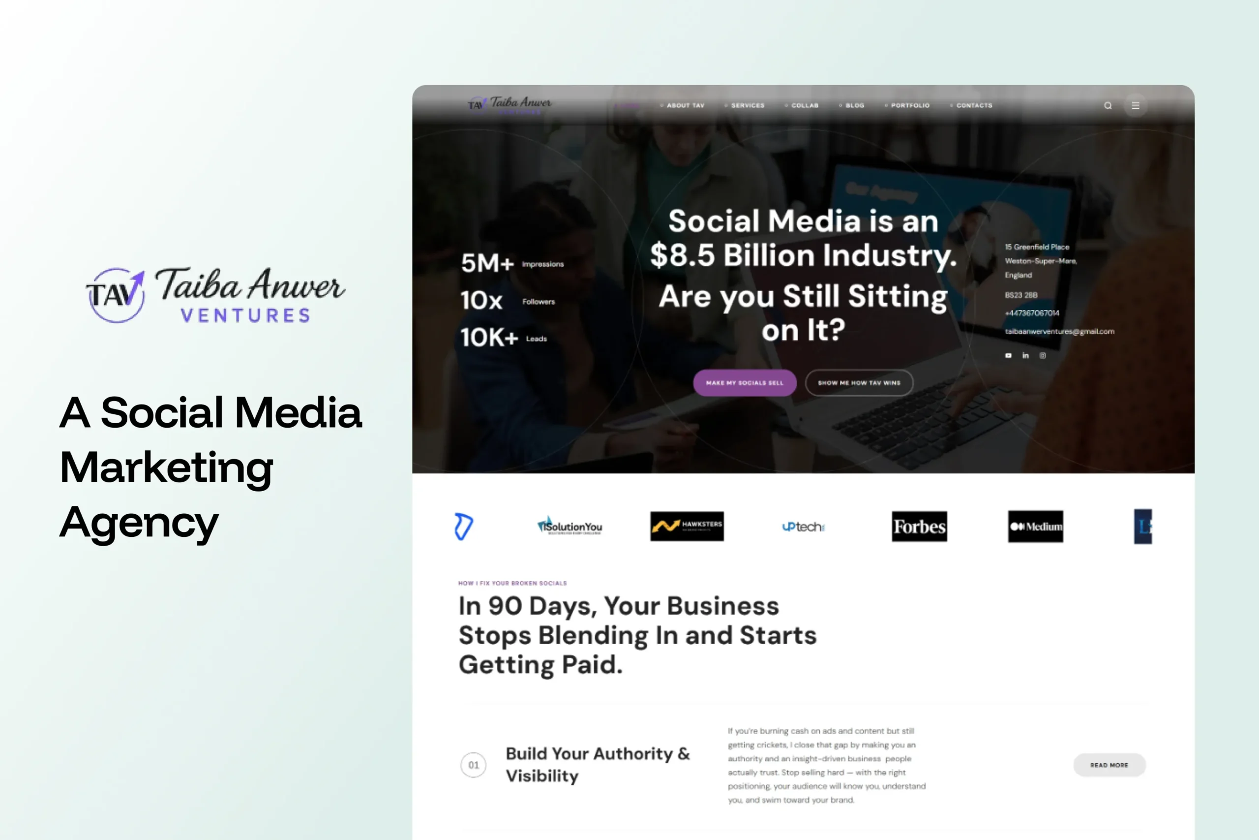 Taiba Anwer Ventures is a social media strategy and marketing consultancy focused on helping businesses and creators expand visibility, engagement, and lead generation across digital channels. The existing online presence lacked a clear, structured way to communicate services, client pathways, strategic offers, and contact options, especially for an audience spanning freelancers, agencies, and business owners.